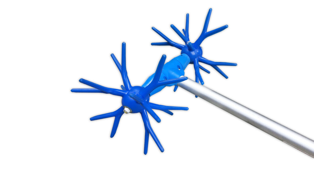 Il motore è posizionato in fondo all’asta: grande vantaggio per la fatica derivante dal lavoro, evita vibrazioni e scompenso in termini di bilanciamento della macchina