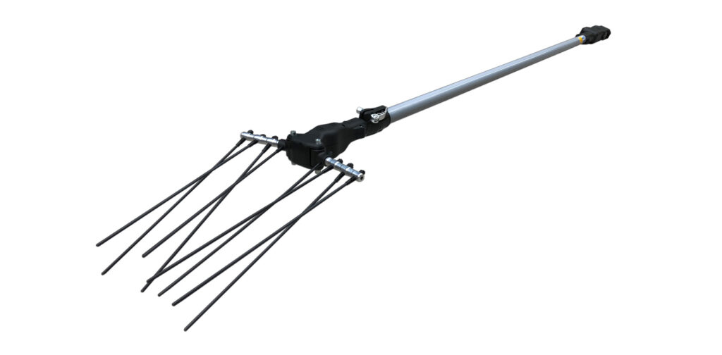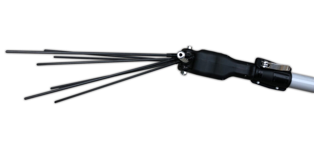 La macchina, molto bilanciata, è composta dal gruppo testa, asta telescopica (215 – 300 cm) con relativo sistema di bloccaggio e dall’impugnatura nella quale è situato il motore 12V/riduttore e l’interruttore ON/OFF dotato di sistema di sicurezza