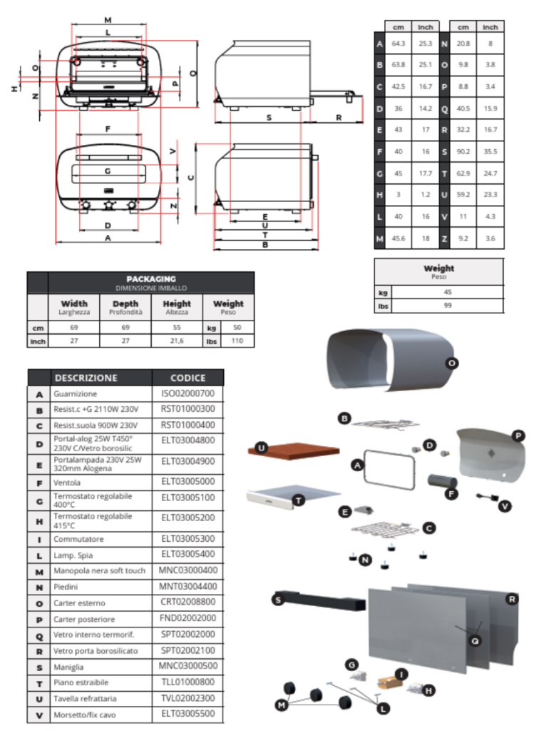 - Funzioni: Pizza, Statico, Solo Piano, Grill