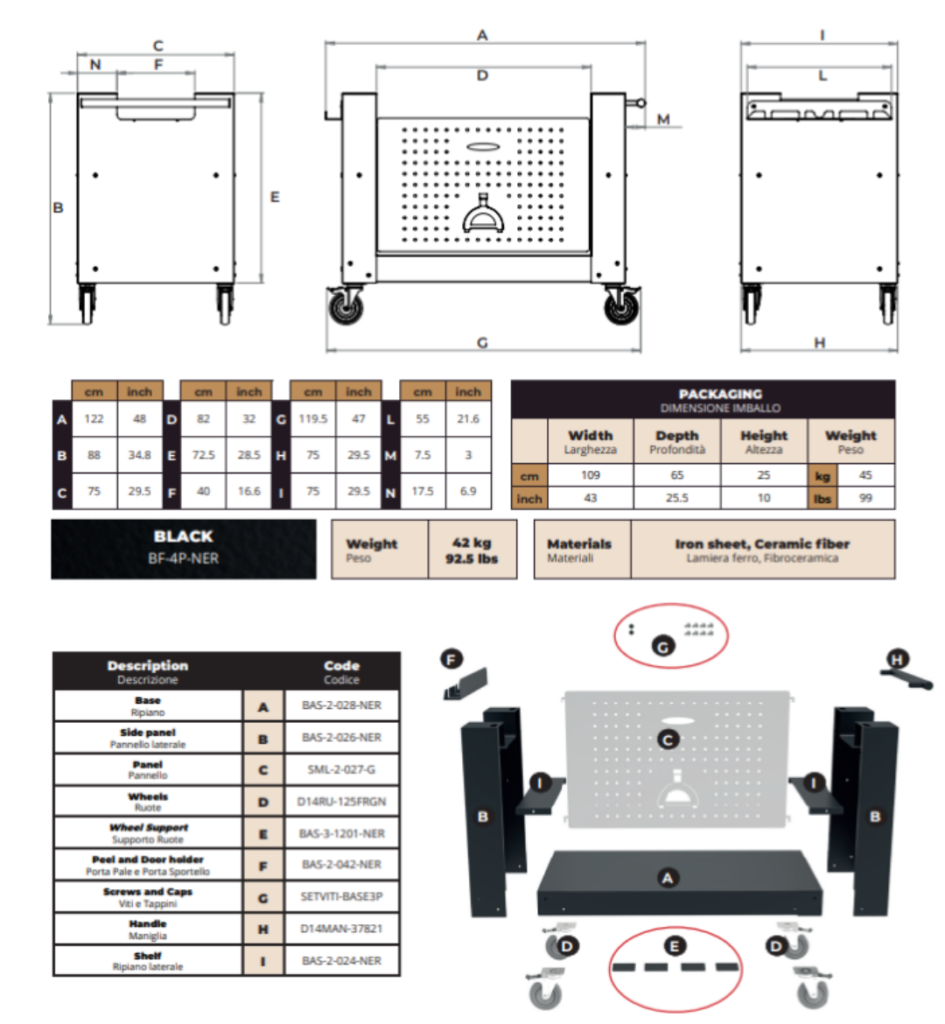 - Con un design ergonomico e pratico, il carrello consente di spostare facilmente il forno quando necessario, offrendo flessibilità nell’uso e nella disposizione.