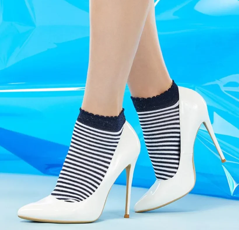 - Minicalzino moda con viscosa e lamé con motivo di righe a contrasto.