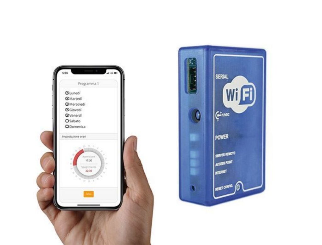 - Kit wifi per la gestione comandi a distanza tramite App WayApp dedicata installabile gratuitamente da Apple Store e Google Play Store (iOS e Android), posto all’interno della stufa; installabile anche in un secondo momento.