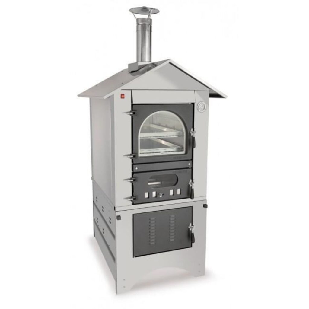 - Camera di Cottura: Doppie pareti smontabili in acciaio inox 304, ventilazione plus, tre livelli di cottura, illuminazione, base in refrattario alimentare