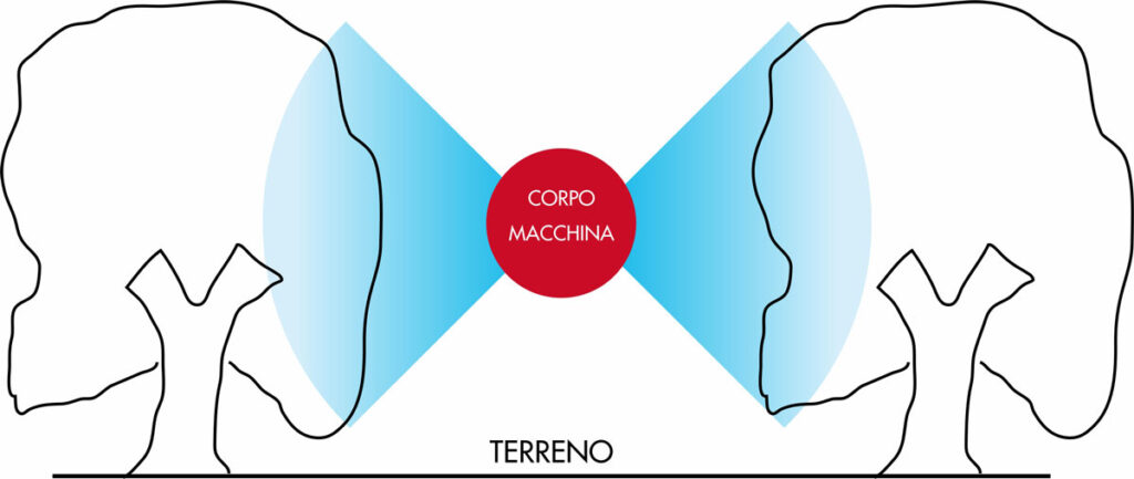 La penetrazione nel fogliame è garantita dall’alta pressione dei getti, con la possibilità di regolarne l’angolo e l’ampiezza in base alle esigenze.