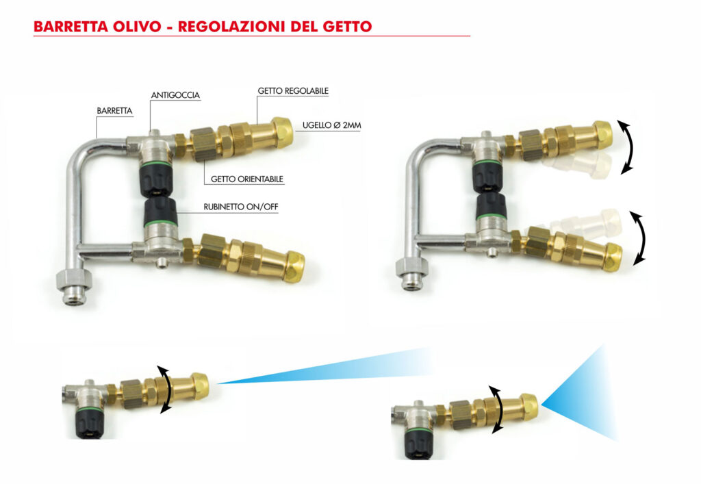 Grazie a queste regolazioni è possibile trattare piante alte fino a 4 metri con la certezza di bagnare bene anche le punte.