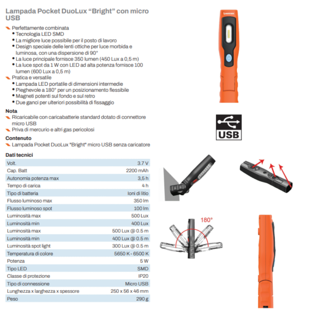 - La Lampada Pocket DuoLux “Bright” è la soluzione perfetta per l’illuminazione sul luogo di lavoro.
