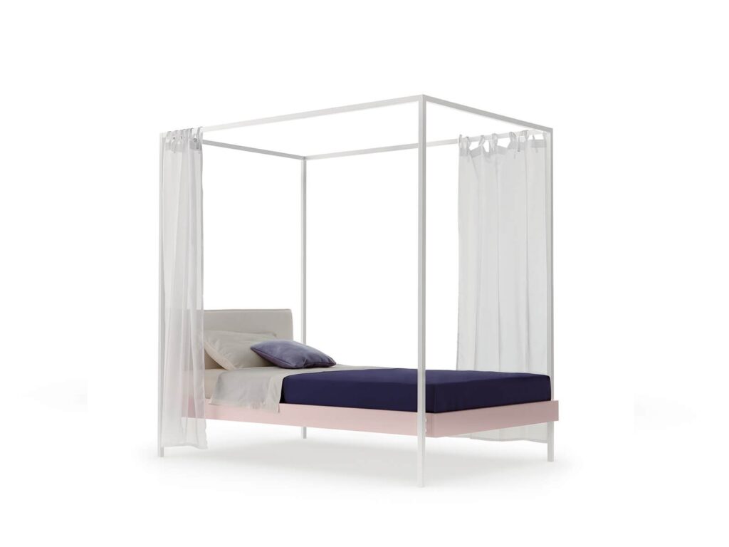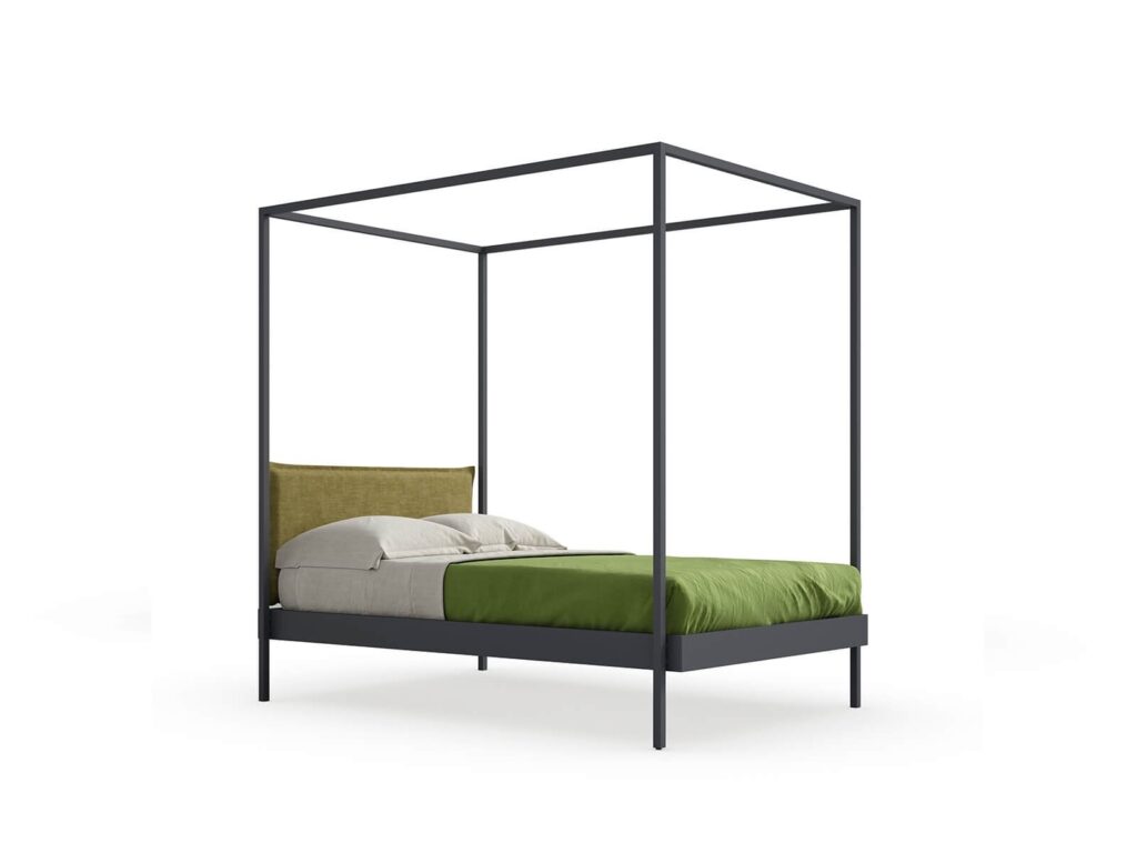 - Il letto a baldacchino Kap, con o senza testiera imbottita, crea un piccolo mondo a parte all’interno della stanza, ancora più protetto nella versione con tenda.