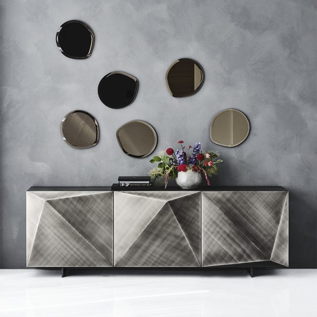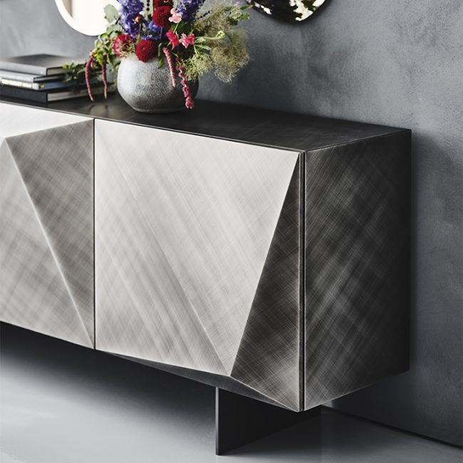 Kayak è una madia dal design eclettico e scultoreo pensata per arredare con eleganza ambienti residenziali e per completare raffinati progetti di contract interior design come lussuosi ristoranti di design. Che si tratti di zona pranzo o di ambienti living questa credenza moderna dall’anima poliedrica, mostra pregiati dettagli ed esclusive finiture. Le nuove Brushed Bronze o Brushed Grey regalano caleidoscopici giochi di luce ed affiancano le tradizionali varianti laccato lucido. Il suo cuore è fatto di setosi ripiani in cristallo trasparente, perfetti per riporre gli oggetti più cari.