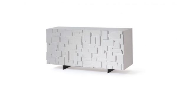 La madia moderna Labyrinth è formata da una composizione di volumi tridimensionali che formano un pattern labirintico di ispirazione cubista. Questa decorazione è presente sulle ante in poliuretano verniciato, che creando un effetto chiaro scuro affascinante. La madia di design è realizzata con 2 o 3 ante e in due diverse altezze, per adattarsi facilmente ad ogni ambiente della casa, con uno stile ricercato e la cura del dettaglio che contraddistingue la manifattura italiana.