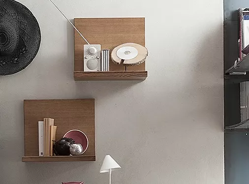 Mensolina in legno con lavorazione sullo spessore. Ideale per organizzare anche lo spazio più piccolo.