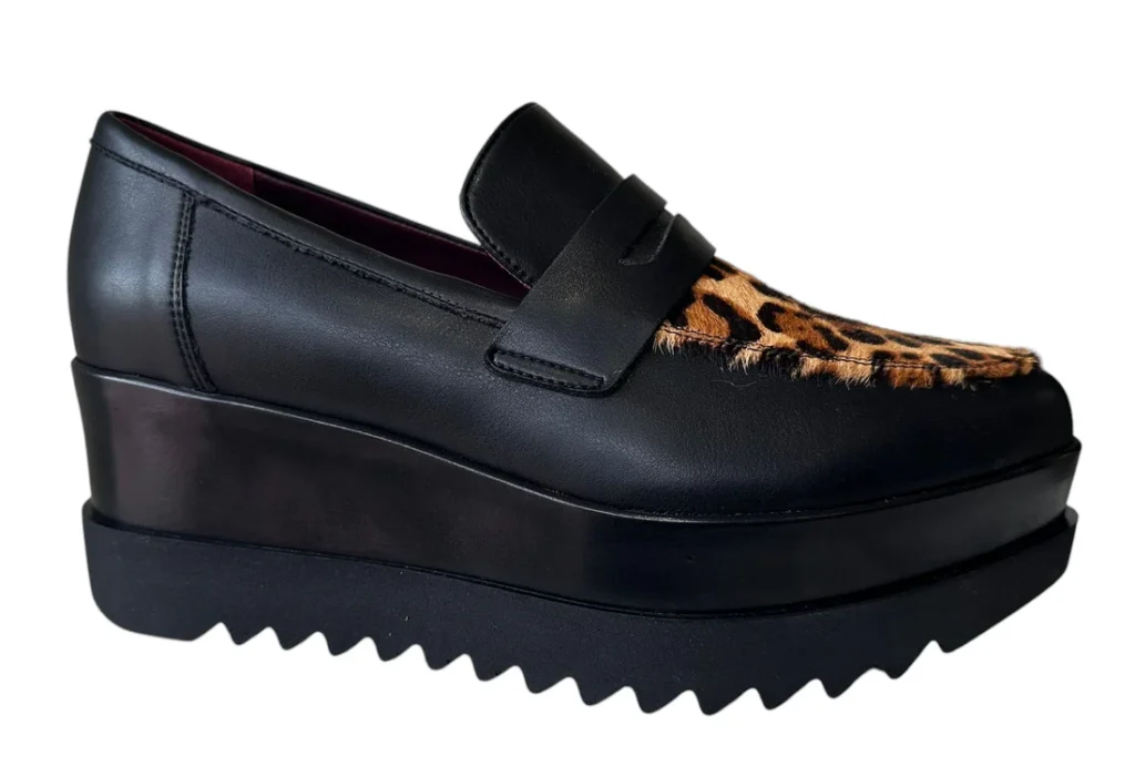 - Mocassino elegante con zeppa e dettaglio in stampa leopardata, perfetto per aggiungere un tocco di stile al tuo outfit.