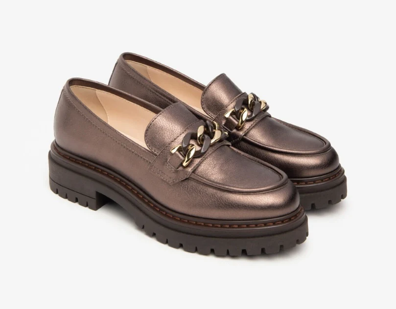 - Mocassini laminati testa di moro in vera pelle