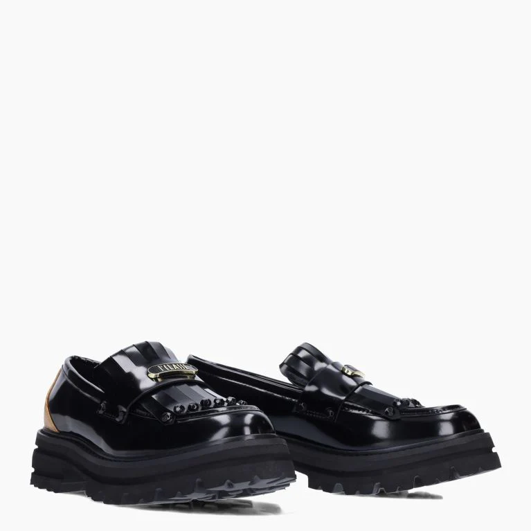 Mocassini Donna Platform Nero con Frange e Inserto Geo
