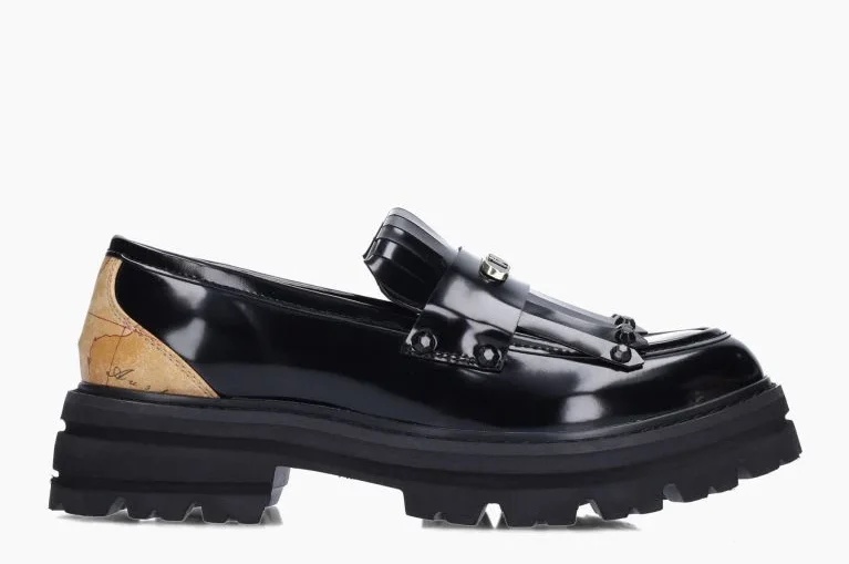 - Mocassini Donna Platform Nero con Frange e Inserto Geo Classic 1A Classe Alviero Martini