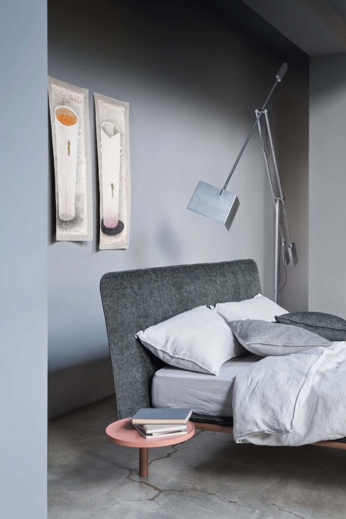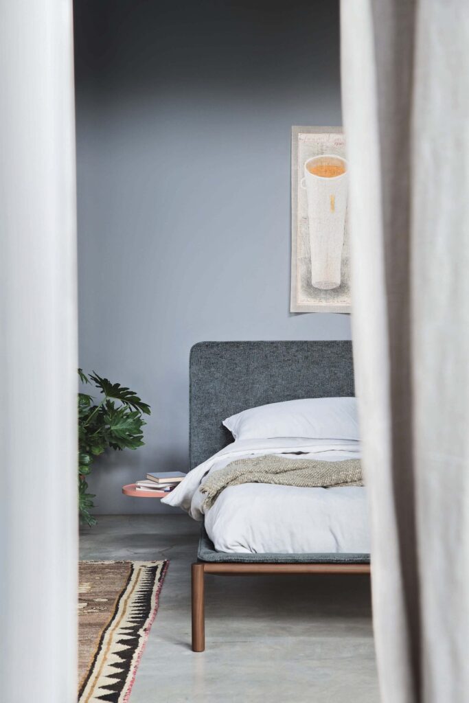 Rain è un letto dal taglio giovane e contemporaneo che gioca con tessuto e legno per creare nuovi effetti materici. L’ampia testiera imbottita si può completare con uno o due vassoi circolari che funzionano da eleganti comodini. Al giroletto può essere applicato un morbido coprigiroletto imbottito.