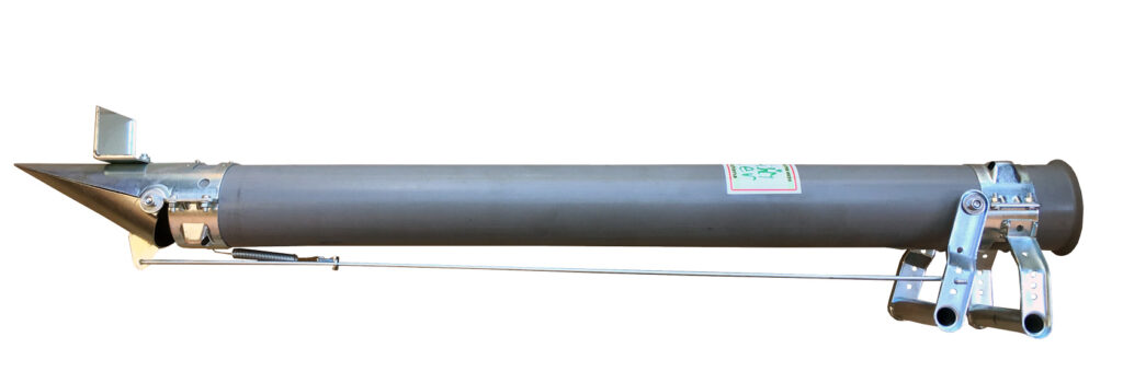 inserire il bulbo o la piantina nel tubo, agire sul manico di apertura,