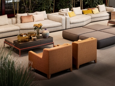 Spiccata identità decorativa per Alma di Leonardo Dainelli, poltrona ricca nelle forme e dalla sofisticata attitudine sartoriale. Interpretazione contemporanea dei codici stilistici degli anni ’40 dove le forme avvolgenti e sagomate incontrano la morbidezza dei cuscini di seduta e schienale dando vita ad una nuova elegante espressione dell’attitudine di Lema al comfort.