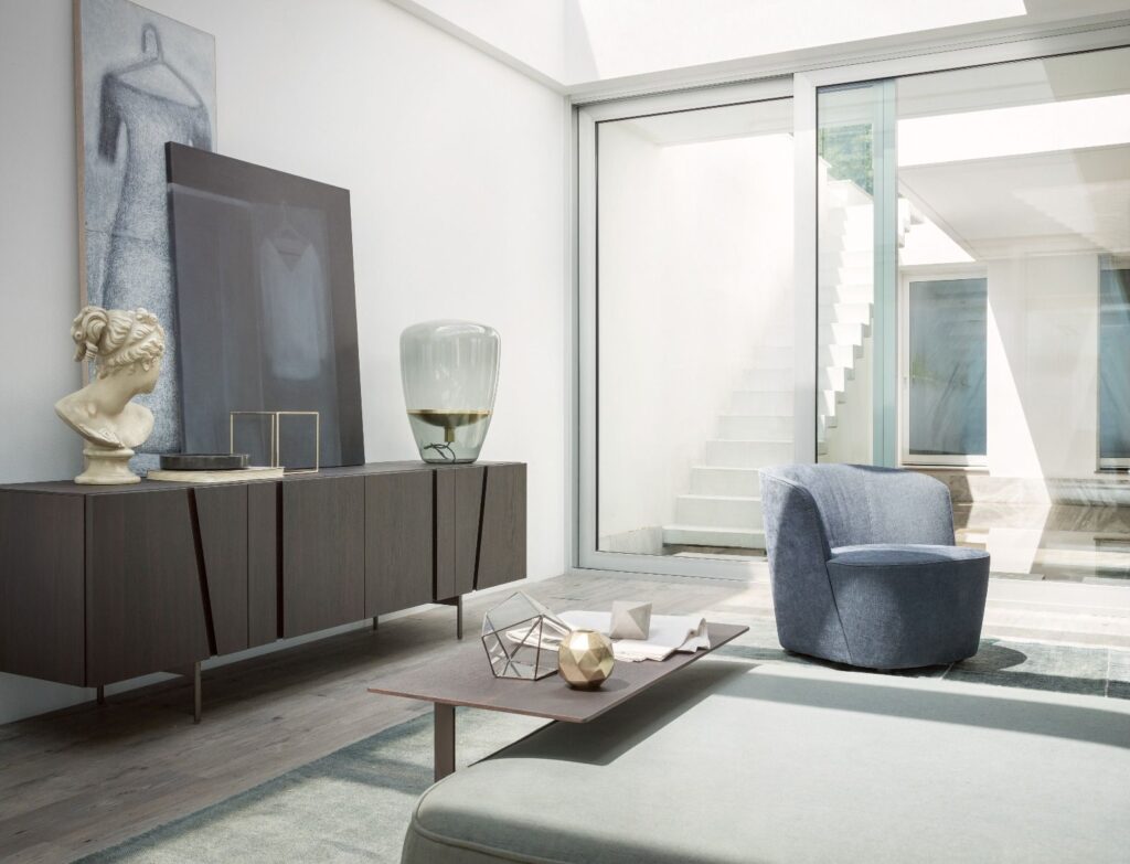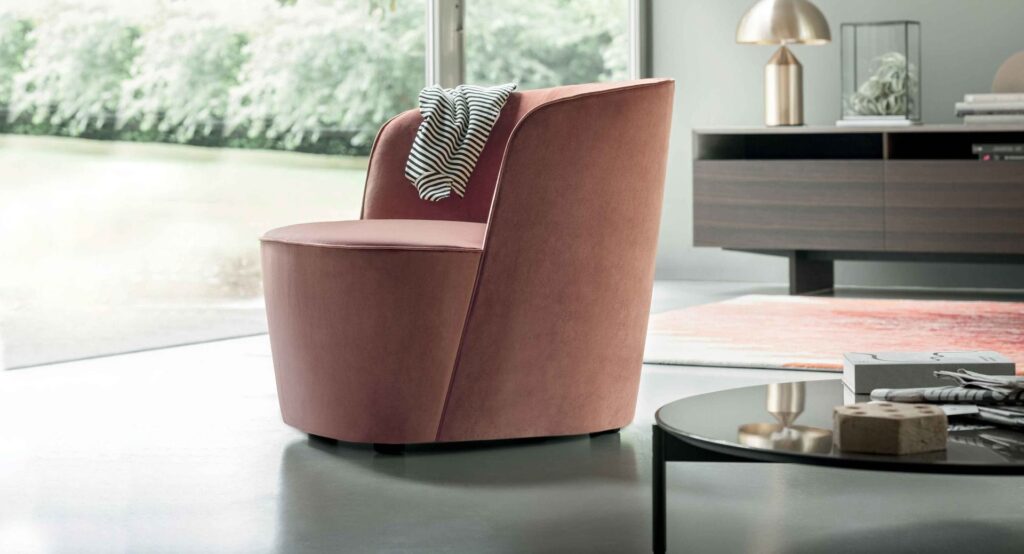 Poltrona monolitica, raffinata e avvolgente