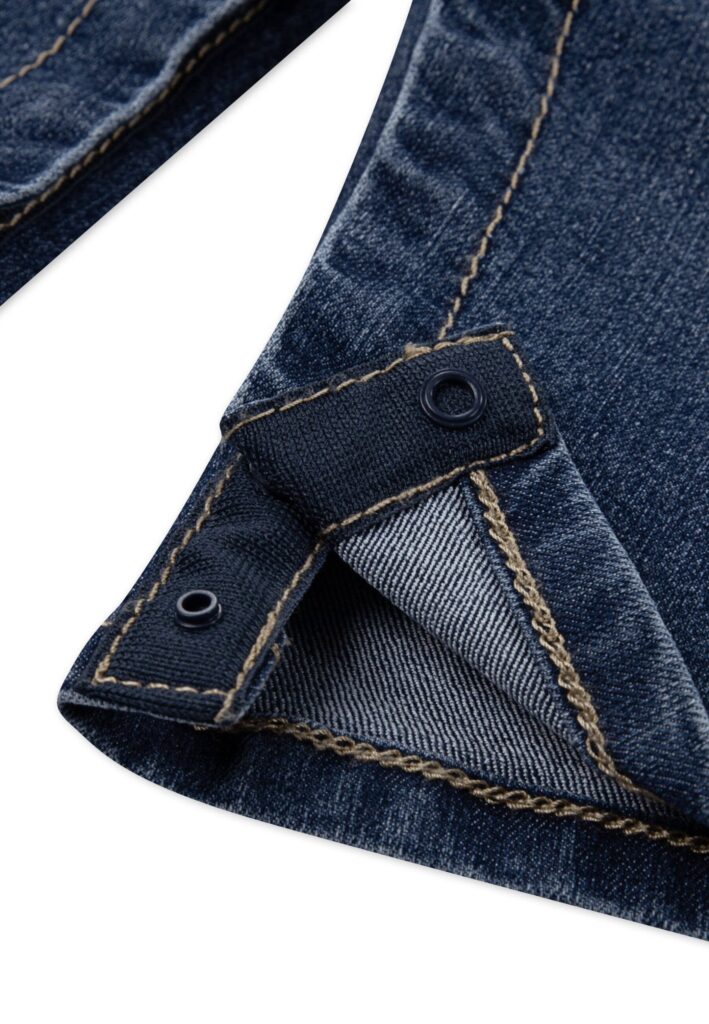 - Salopette di jeans con comoda apertura a clip,