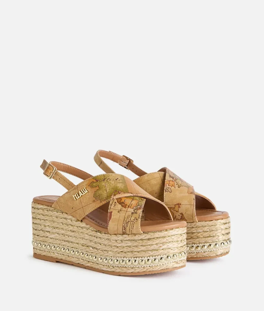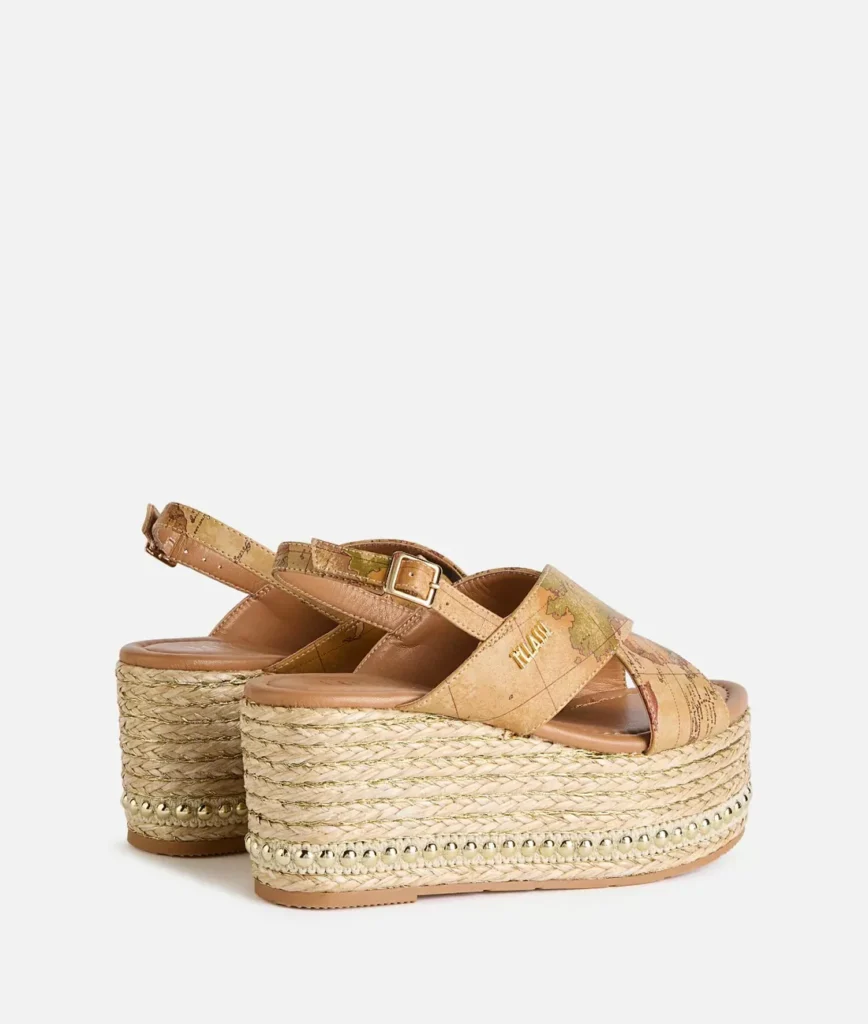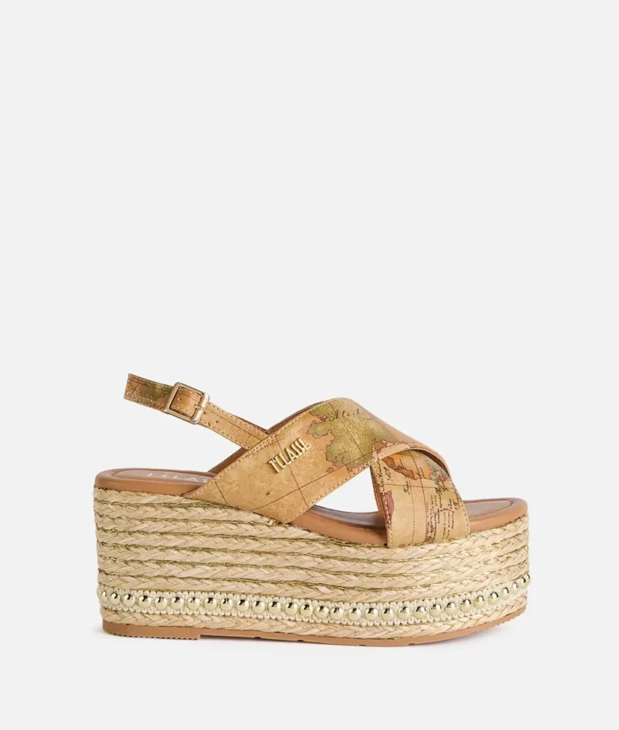 - Sandali con zeppa in corda in eco nappa Geo Classic