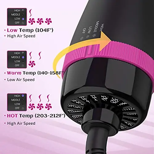 - Spazzola volumizzante per asciugacapelli e styler ad aria calda professionale 2 in 1 anti-crespo.