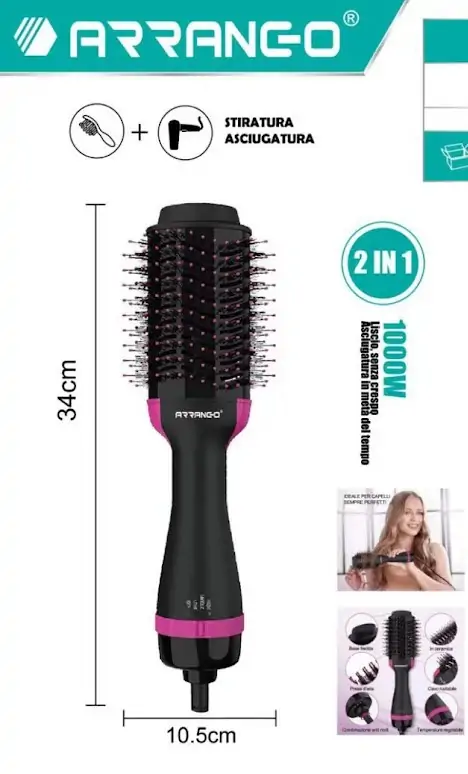 - spazzola asciugacapelli styler 2 in1 1000 w arrango ar47976