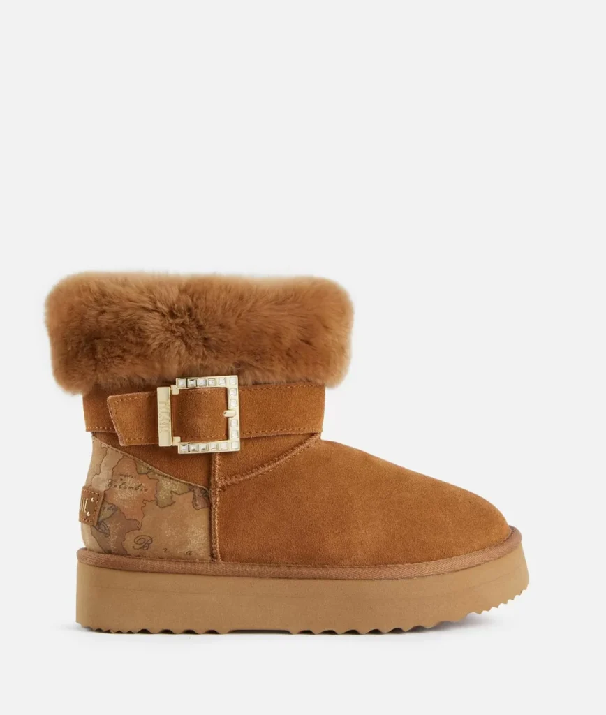 - Stivali in pelle scamosciata foderati in pile con dettagli in lapin sul bordo Naturale