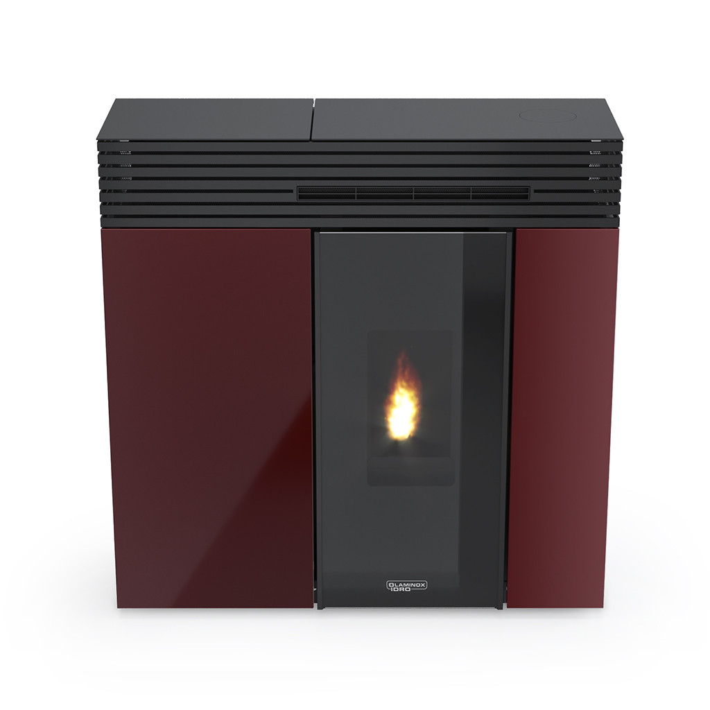 - Stufa a pellet Air dalla linea originale adatta all’installazione nei corridoi (profondità di soli 32 cm), possibilità di scarico fumi superiore a top o posteriore.