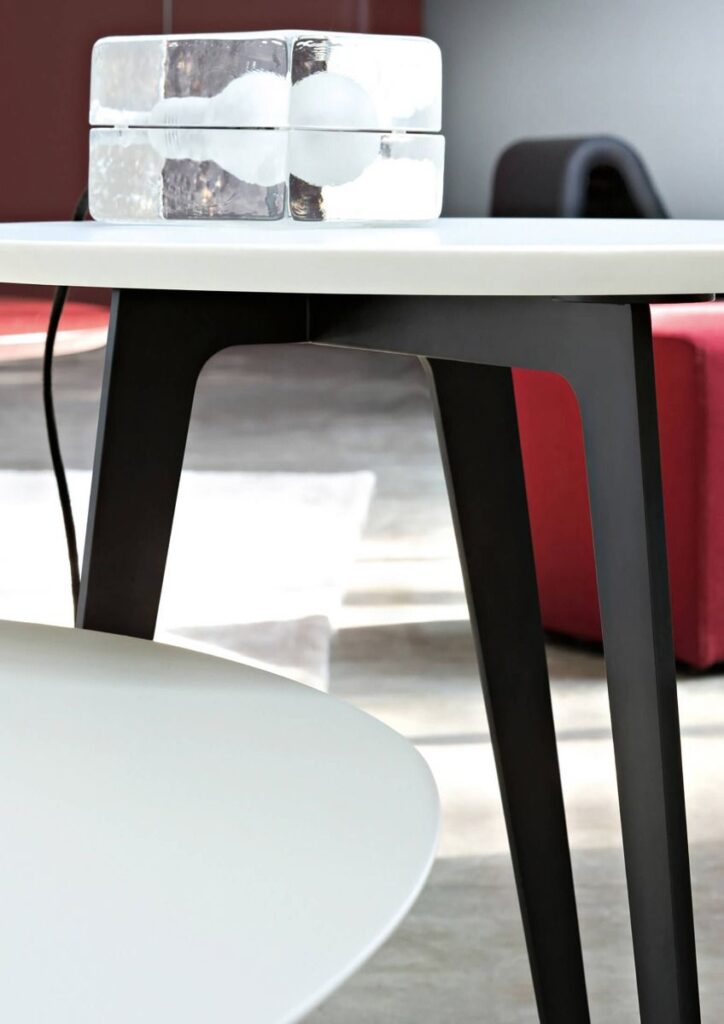 Petali in legno laccato di forma ellittica lievemente irregolare appoggiati a strutture in metallo, dalla linea filante, conferiscono ai tavolini Flowers una assoluta leggerezza. Nei tratti dichiaratamente ispirati al design degli anni ’50 nello stile proprio di Roberto Lazzeroni.