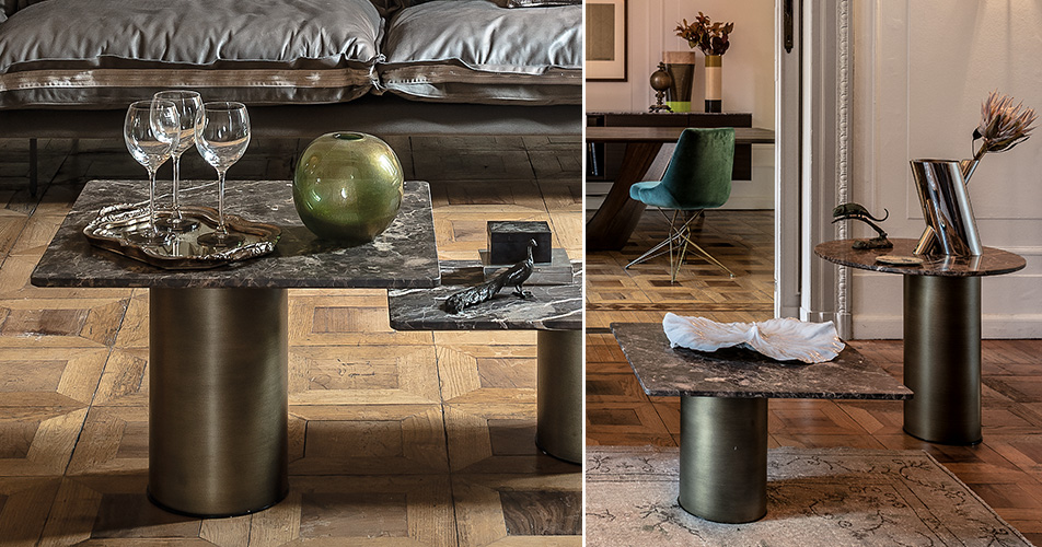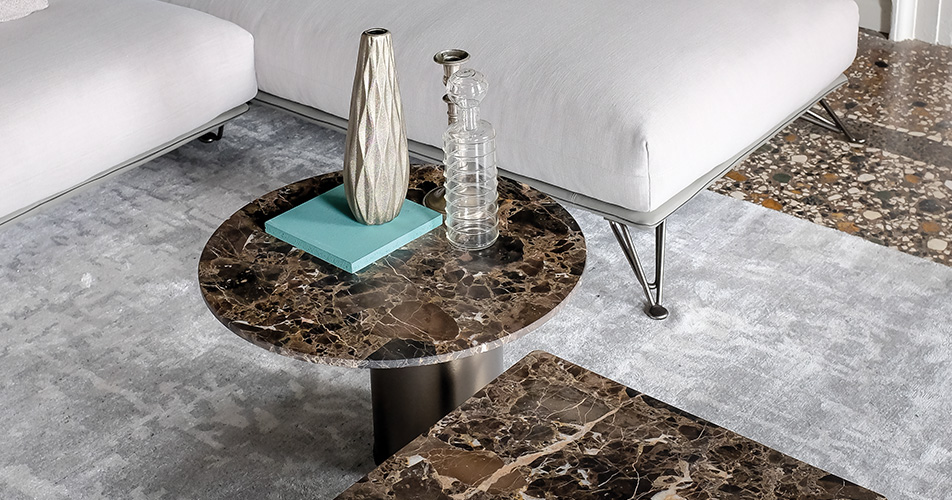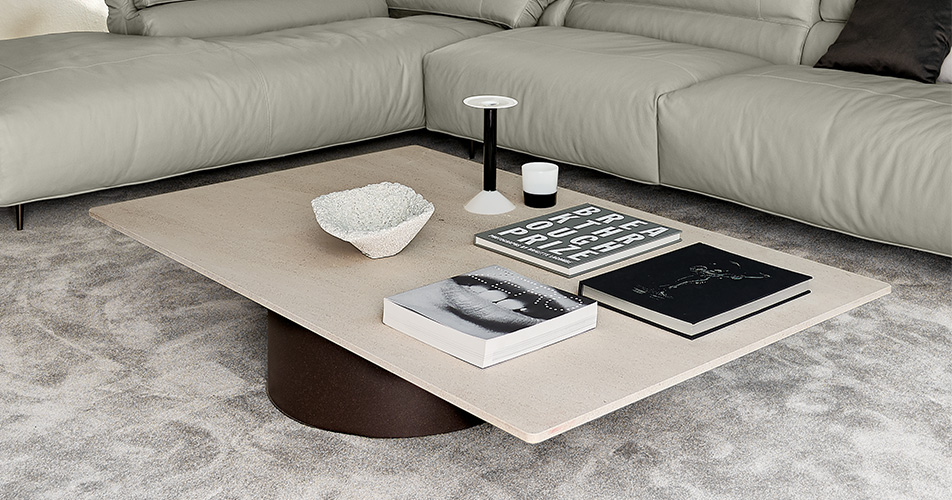 - Con una base decentrata e due materiali distinti, Petra è il tipo di tavolino che gioca con la creatività e sfida l’ingegno necessario per realizzare qualcosa che non solo si distingua, ma che funzioni.