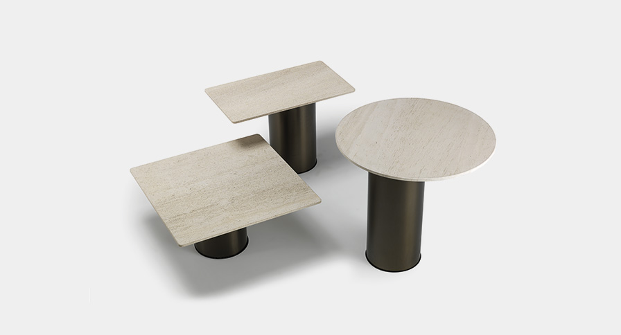 Con una base decentrata e due materiali distinti, Petra è il tipo di tavolino che gioca con la creatività e sfida l’ingegno necessario per realizzare qualcosa che non solo si distingua, ma che funzioni. A prima vista risaltano le superfici sovrapposte e la combinazione inusuale di alcune forme geometriche semplici e austere. Da solo o in gruppo, ognuno con la possibilità di diverse forme di design come cilindri, cerchi, quadrati e rettangoli.