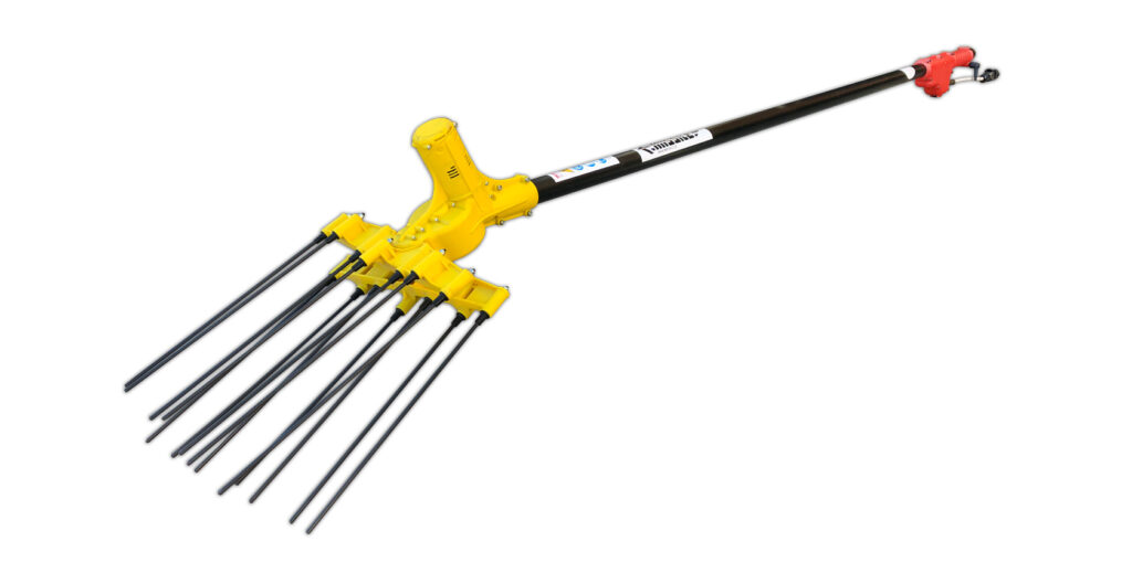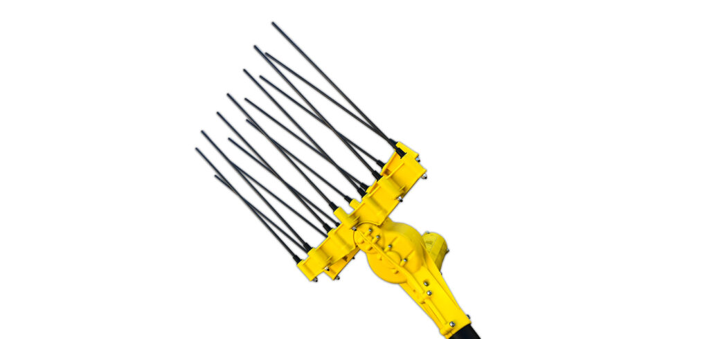 I rastrelli con 14 astine in carbonio si muovono compiendo oscillazioni laterali. Questo permette sia di raggiungere un ottimo rendimento nella raccolta, sia di staccare anche le olive più tenaci dalla pianta