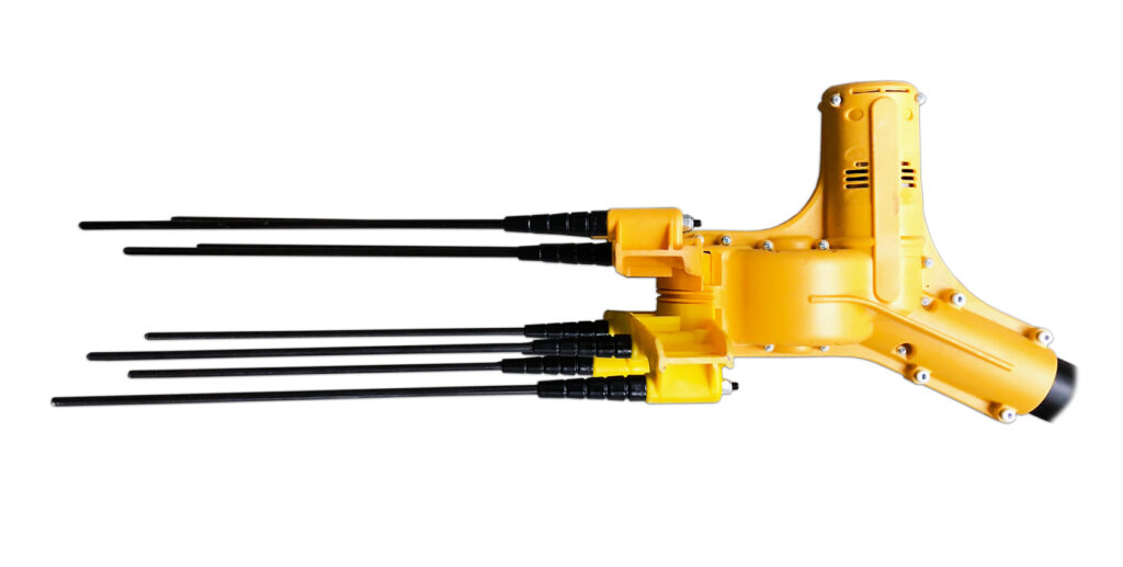 Astine completamente in carbonio con base rinforzata… sono lunghe ben 28 cm, permettono alla macchina di infilarsi anche tra rami folti e svolgere comunque in maniera perfetta il lavoro