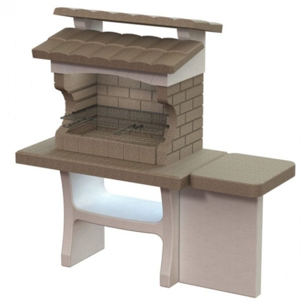 - Barbecue in pietra ricostruita con tavolo laterale per ampia superficie di lavoro.