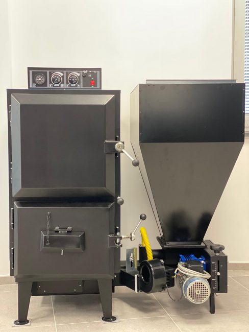 L’alimentazione della combustione avviene per mezzo di un bruciatore meccanico a coclea. Con alimentazione manuale è possibile utilizzare anche legna in pezzatura opportuna.