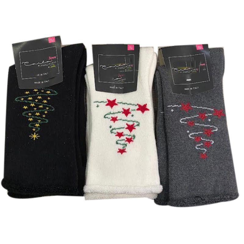 - Calza Corta Donna Natalizia Pile Fantasia Albero Carla