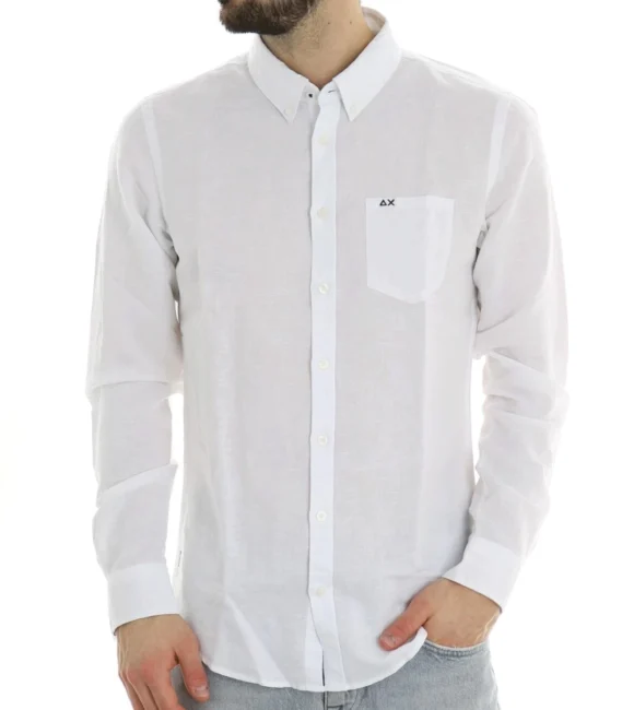 - Camicia da uomo Sun68 maniche lunghe, 55% lino 45% cotone, botton down.