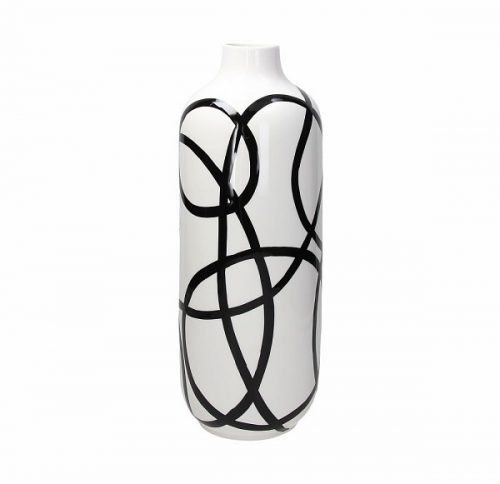 smaltata a forma di bottiglia con disegni dalle forme curve ed astratte