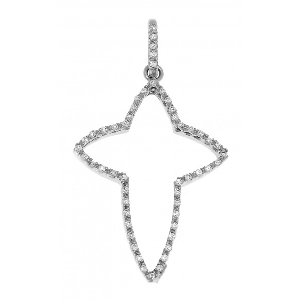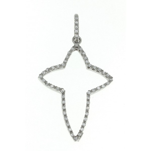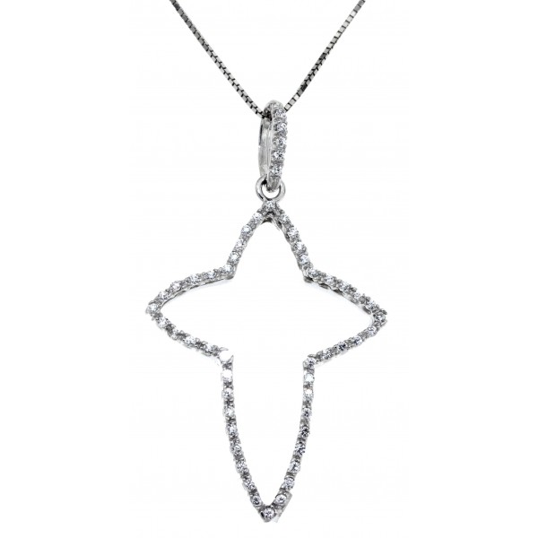 Eleganza e sacralità danno vita a questo monile in oro bianco 750°°° illuminato da sfavillanti zirconi