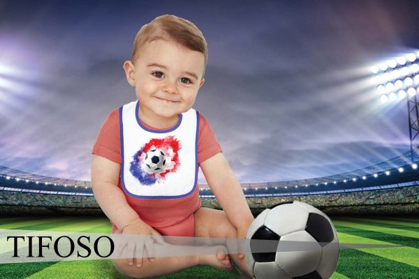 comodo bavagliolo chiusura con bottone automatico. fronte decorato.