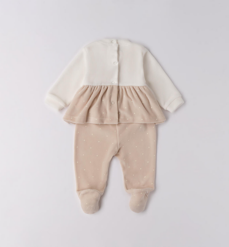 - arricchita da fiocchi in applicazione e fantasia pois.