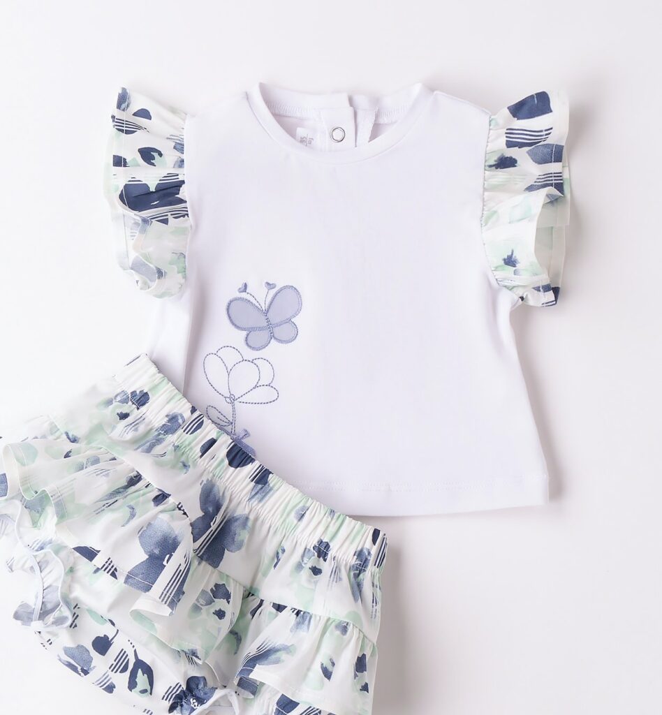 - maniche con voilant con stampa farfalle e