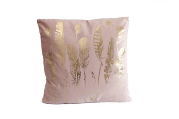 Cuscino in velluto con stampa a piume oro cm. 45×45