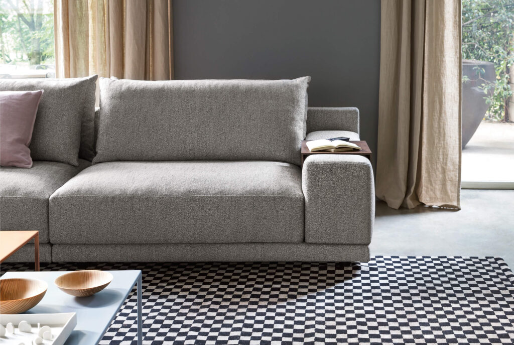 Ampi e comodi volumi rettangolari caratterizzano il divano Mac. La modularità degli elementi e le numerose profondità delle sedute consentono di disegnare un angolo di serenità e di quiete che asseconda le diverse esigenze di stile e di spazio. È disponibile con rivestimenti sfoderabili in tessuto, in pelle ed ecopelle e schienale con cuscino singolo o con doppi cuscini a saponetta.