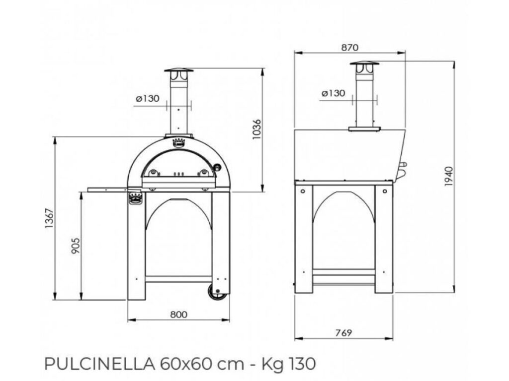 - Dimensioni camera cottura disponibili : 60×60 (2 pizze)