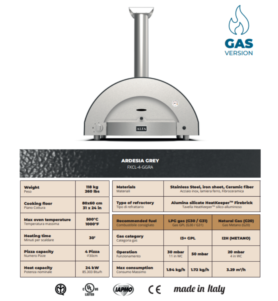 - Il forno 4 Pizze è disponibile nella versione a legna o a gas e grazie al kit hybrid puoi anche scegliere di cucinare a legna nel tuo forno a gas.
