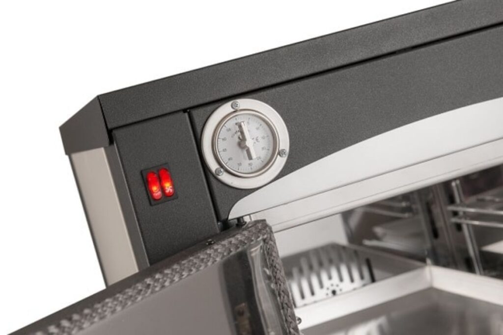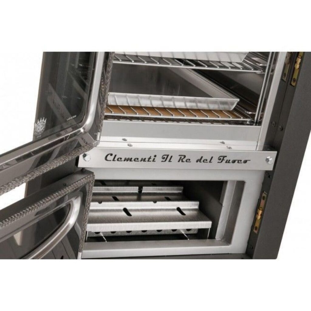 - Accessori Inclusi: 2 griglie, 2 teglie in alluminio, carrello con ruote, comignolo inox, termometro e timer.
