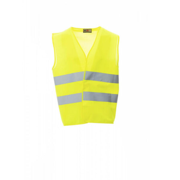 - Gilet in alta visibilità con bande riflettenti, chiusura con velcro, completamente bordato.