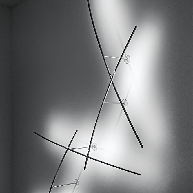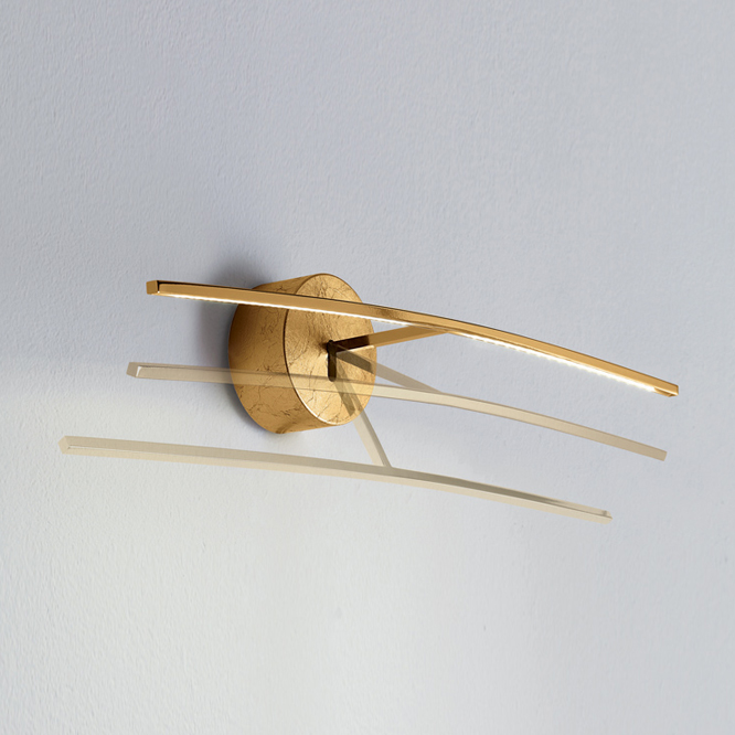 Lampada curvata da incasso a soffitto o parete, a luce indiretta, realizzata in trafila di ottone 7x7mm. Illuminazione a microstrisce LED ad alta efficienza luminosa.