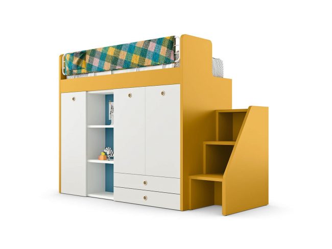 - Lo stesso ingombro di un letto, molte funzioni in più: il letto a castello Ergo si può attrezzare con uno o due letti.